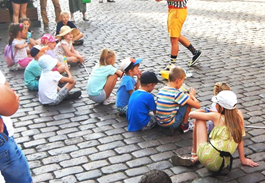Figure 9 shows children watching entertainment of a clown while sitting on a cobbled street in the city of Torun, Poland, EU. Unfortunately, today children in the developed countries spend much of time sitting on chairs in front of computer or TV screens.