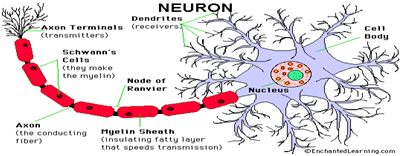 Figure 7 (a) Typical Neuron in details and (b) different types (4+2) in the nervous systems ue to different form factors in the dendrite trees .