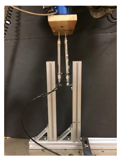 This experiment performed in two parts: 1) define cylinder pressure-output force relationship of the two cylinders alone, and 2) define the cylinder pressure-offloading relationship of the brace. The pressure-output force relationship of the stand-alone pneumatic cylinders was first characterized (Figure 5). A plate was created with two clearance holes to place the 7/16-20 threaded ends of the cylinders through. A corresponding nut was then used to secure pneumatic cylinders to the plate. They were each attached to a vertical fixture for positioning, which was securely attached to the platform of a robotic test frame and placed beneath a load cell (Model 100M40 six-axis load cell; JR3 Inc., Woodland, CA). The cylinders were connected in series in the same manner as when attached to the DAO. By connecting pneumatic cylinders in series, equivalent pressures were delivered to the two cylinders, corresponding to the pressure value shown on the pressure gauge (i.e., when the pressure gauge showed 40 PSI both cylinders inflated to a pressure of 40 PSI). Both cylinders acted on the load cell, so the reported values show the total amount of force delivered by both cylinders. The compressive force on the load cell was acquired at various cylinder pressure values: 40, 50, 60, 70, and 80 PSI. Each targeted pressure value tested four times, and the load cell readings were exported and processed in Microsoft Excel (2013). The pneumatic cylinders were emptied of their pressures between all runs and inflated to the targeted pressure to begin each new test.