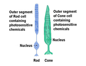 Figure 9 Cat Vision: The Pigment of Epithelium reflecting light for indirect exposure to the cones and rods; however cat has both layers including reflecting Pigment of Epithelium also distributed with rods without cones. It provides a factor of 2 in the amplitude and a factor 4 in the intensity detection. Thus cat eye must have very sensitive pupil dynamics to close under a stronger light.