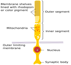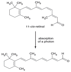 Ans: a dropping of one of the seventh arm of rhodopsin molecule to increase the wavelength of detection becoming red color.