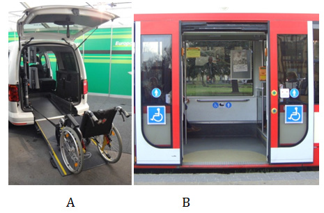 For many years people with disability lived at homes with no possibility of leaving their rooms and to take part in recreation activities. Today these people can use wide corridors, automatically opened doors, elevators, escalators, special ramps. They can use specially prepared both public transport (buses, tramways, trains) and private transport (bicycles, cars). These transport devices are equipped with low floors or with platforms or ramps so that disabled people can access the car’ or train’s floor (Figure 1). Also public areas are prepared for disabled people. There are low level curbs for crossing the street by people with crutches, or riding the wheel chair. There are also special places at the parking lot designated for disabled drivers and/or passengers. Recreation areas are technically prepared for reception of disabled people. There are several kinds of special equipment which give disabled people an opportunity of utilization of these areas. European Network for Accessible Tourism24 issued a Code of Good Conduct which includes among other the following: a) all people have the right to enjoy tourism, whatever their background or abilities; b) all customers are welcome, c) removing and preventing all access barriers of infrastructure, products, services and information, using a ‘design-for-all’ approach.