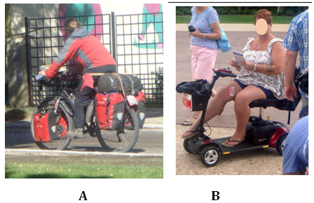 Disabled people in order to take part in a recreation activity use rehabilitation equipment like canes, crutches, or orthoses. This enables them to go on their own legs at the tourist places (Figure 2). Endings of prostheses have sometimes crampons enabling people to walk across snow covered areas or across the glacier. Other people can use electric bicycles or standard or electric wheel chairs (Figure 3). Sometimes wheelchairs are equipped with adaptive tires or caterpillars for travelling across sand or snow. Other chair equipment has skis underneath enabling skiing with a partner or alone. Disabled people who can’t walk and want to be immersed into the water at the swimming pool can use special chairs which are attached to the lift. The chair with a patient can be lowered so it can immerse into the water of a pool. Water equipment is designed in order people with disabilities can use kayak and rowing boats or sail boats. These boats are wider, with a possibility of taking a folded wheel chair, sometimes with special floating tanks on both sides of a boat. Robots can assist people with disabilities in their movement at the tourist places. Robots can carry luggage, can show the direction to the hotel facilities, can answer on some questions. They can do it in different languages.