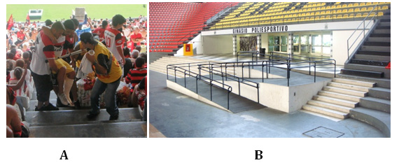 In a publication “Accessible sport facilities” the authors stated that good facilities are fundamental to developing sporting opportunities for everyone, from the youngest beginner to the world class athlete. The design and maintenance of sport facilities need to follow the Inclusive Design principle. This includes considering the needs of older people alongside the needs of disabled people–with sensory, cognitive and mobility impairments.32 Sport facilities must have easy access for both competitors and spectators. Competitors need an access to the sport arena, locker rooms, toilets, rooms with equipment. Spectators should have access to the designated stands, to the service booths, to the toilets. There exists a high difference in sport facilities’ accessibility for disabled people. Taking into account some big older stadiums there is no access for disabled persons, while the new designs include access for wheelchair people (Figure 10).