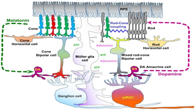 Figure 5 Diagram of retinal cells and the hormones involved with early vision.12