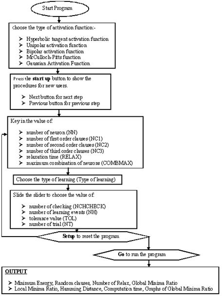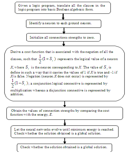 Number of first order clauses (NC1), Number of second order clauses (NC2), Number of third clauses (NC3) is related to the value of the NN that had entered. The maximum number of relaxation time (RELAX), and maximum combination for neurons (COMBMAX) is 100. All these values are chosen by try and error technique.