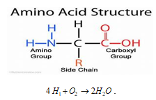 Figure 4 (a) Burning hydrogen’s into water, (b) the water combined further with Carbon (C) & Nitrogen (N) atoms to form 20 different organic molecules called amino acids ( ), in terms of different kinds side chains to make up 4 basic building blocks of the reproductive protein of the plants and animals on the Earth.