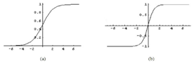 Figure 6 Nonlinear threshold logics of Activation firing rates (a) for the output classifier, (b) hidden layers hyperbola tangent