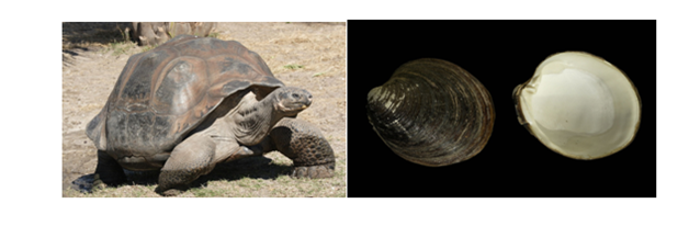 Figure 11 Longest Life Animal on the Earth: Galápagos (Darwin's island) giant tortoise lives up to 190 years; Arctic Clam at 400 years. The bodies of Galápagos tortoise and Arctic clam have telomerase keeping longevity Astrocytes Cells are part of Central Nerves System (CNS) with 4 kinds of Glial cells as the house-keeping servant cells. They get their name because they are "star-shaped". They are the most abundant Glial cells in the brain that are closely associated with neuronal synapses. They regulate the transmission of electrical impulses within the brain. ... Metabolic support: They provide neurons with nutrients such as lactate. [Image courtesy of EnCor Biotechnology Inc.; An Astrocytic cell from rat brain grown in tissue culture and stained with antibodies to GFAP (red) and vimentin (green). Both proteins are present in large amounts in the intermediate filaments of this cell, so the cell appears yellow. Visualization of individual DNA molecules in solution by light microscopy: DAPI[4,6-Diamidino-2-phenylindole] staining method developed to visualize individual DNA molecules in solution under a fluorescent microscope connected to a highly sensitive video camera. The blue material shows DNA visualized with DAPI stain, and reveals the nuclei of the Astrocyte and other cells]; Cause of Dementia Amyloid beta peptide (beta-APP) A partially folded structure of Amyloid beta(1 40) in an aqueous environment (pdb 2lfm). A recent study suggested that APP and its Amyloid potential is of ancient origins, dating as far back as early deuterostomes. The normal function of Aβ is not well understood. Though some animal studies have shown that the absence of Aβ does not lead to any obvious loss of physiological function, several potential activities have been discovered for Aβ, including activation of kinase enzymes, protection against oxidative stress, regulation of cholesterol transport, functioning as a transcription factor, and anti-microbial activity (potentially associated with Aβ's pro-inflammatory activity)