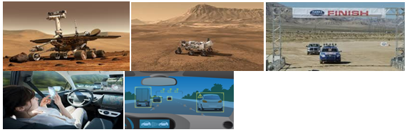 Figure 8 A long history of NASA and DARPA have invested on Driverless Autonomous Vehicles (DAV). Nevertheless, in no-man land, the scientists & technologists have not taken into account human driver and pedestrian behaviors. Applying AI to Sensors Suites is both all-weather W band Radar and optical LIDAR, as well as the Video Motion Detection Optical.