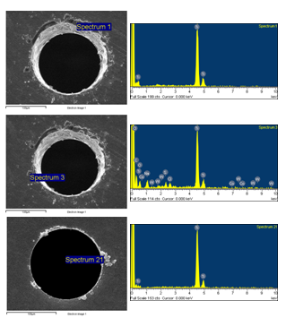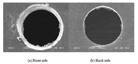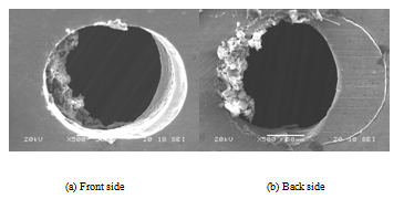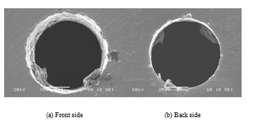 The acetone and ethyl alcohol were taken to clean the samples of the titanium sheet carefully to attain the surfaces according to the experimental requirements, and then set the sample into the microdie. Specimens were then punched by the microprocessing machine MP50 (Made in Japan) with 20 pulses per minute with feedrate of 2mm. The characteristics of microholes punched by WC+Co micropunch in different periods were researched by LEXT confocal laser-OLS3000, scanning electron microscopy (SEM), energy dispersive X-ray analysis (EDX), optical surface profiler (OSP)-Veeco/Wyko NT9300, etc.