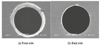 Advances in tele-communication, transportation and medical fields lead to challenges in micro fabrication, miniaturization and multi-functional technologies in manufacturing. Feature sizes are in the range of a few microns up to hundreds of microns.1–4 Ability to fabricate micro holes in large quantities has potential applications in medical implants, diagnostic and remediation devices, micro-scale batteries and fuel cells, fluidic microchemical reactors requiring micro-scale pumps, valves and mixing devices, micro-fluidic systems, cooling holes in jet turbine blades, fiber optics, micro-nozzles for higher energy efficiency and less pollutant emissions to the environment,5–7 micro-molds and deep X-ray lithography masks, optical lenses, and micro components in daily life products such as compact disc players, air bags and inkjet printers. Currently, with the ever increasing demand for smaller, higher-quality and lower-priced products from almost all fields of industry, household equipment and entertainment electronics, the development of manufacturing methods which are tailor-made for the micro systems technique with higher precision, lower cost, larger quantities, more eco-friendly to environment are extremely urgent. Investigators have looked for various methods for the manufacturing of miniature parts.8,9