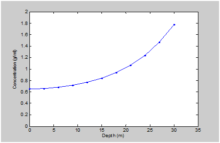 Figure 1 Simulation Values from Arthrobacter Concentration at Different Depth