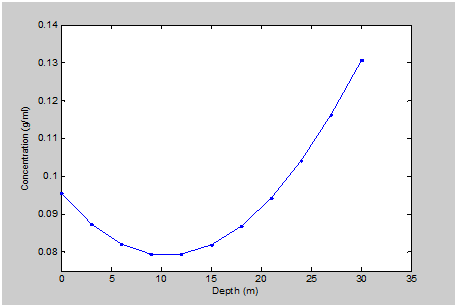 Figure 2 Simulation Values from Arthrobacter Concentration at Different Depth