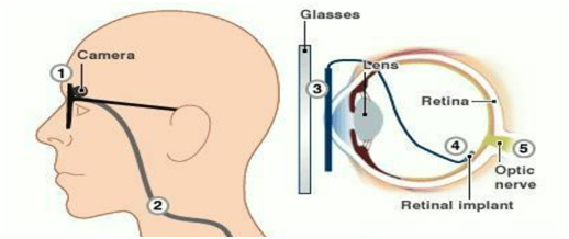 The invention of the bionic eye derives its roots from the amalgamation of medical science with engineering with the contribution of Mark Humayun which is indeed a vision of hope not only for people suffering from genetic retinal degenerative diseases that leads to blindness in old age but also for people suffering from any retina and eye related problems across the globe. For creating the bionic eye the retinal implant is used as a prosthetic device that maps visual images to control signals, based on which it stimulates the surviving retinal circuitry. It works on the principle of image compression, where the bionic eye compresses and reshapes and resizes the images preserving the object detection rate of the image. The sized image obtained is compared with the comparable object detection rate of the original image which in turn reduces the processing of visual information from the retina.8 These retinal implants can partially restore the vision of people with particular blindness caused by diseases such as macular degeneration or retinitis pigmentosa.9