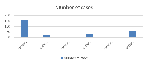 The typological approach here is different from the mere application of the typified clauses, but rather a formal classification of new forms of unfair competition for further search of applicable terms. The typification of new unfair competition in China is mainly to use the search platform of pkulaw.cn to analyze the cases of unfair competition to set up keywords to evaluate the number of different types of cases. Keywords are set as "unfair competition + network", "unfair competition + Internet", "" unfair competition + website "," unfair competition + domain name "," unfair competition + search "," improper competition + software ", and number of cases are 163, 19, 4, 34, 3 and 62 respectively 19.