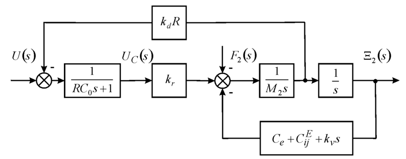 The Laplace transform voltage for the first feedback on the velocity of the second end is founded on Figure 1 in the form