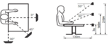 Orientation is varied between an angle of 0°, 45° and 90° with respect to the mannequin´s sagittal plane. Figure 2 shows the overall set-up of this experiment and how position and orientation relate to the seated mannequin. Before each subject is tracked by the Kinect device, the distance between wrist and elbow are measured. The subjects are specifically asked to keep these distances constant over the course of the experiment. All subjects were wearing clothing with long sleeves, such that a uniform surface reflectivity of the arms and torso is established. Because the static posture of the mannequin, this experiment allowed for tracking human subjects which are asked to sit as still as possible in the same posture, allowing for a validation of using the mannequin.