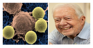 Figure 1 Yellow balls are Keytruda cancer (central cells) marker drug. 1B: Presidnet Jimmy Carter 94 years old recovered from the 4th metastasis state of liver & brain Cancers a decade ago.