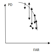 - ROC Curve plotting probability detection (PD) versus False Alarm Rate (FAR) the error bars variances will be reduced in a small, a medium and a large data sizes using amall medium and large ANN's.