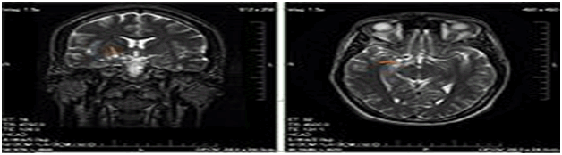 Figure 21 CT scan of Glioma of the left parietal lobe (with contrast enhancement). According to WHO, glioma is classified by grades & locations. WHO grade <2 glioma are benign but incurable, recurrent, & progressively worse. WHO grade >2 Glioma are malign. The group comprises anaplastic astrocytoma’s and glioblastoma multiform. Whereas the median overall survival of anaplastic (WHO grade III) gliomas is approximately 3 years, glioblastoma multiformhas a poor median overall survival of ~15 months). Epigenetic repression of DNA repair, e.g. consuming diets high in nitrites and low in vitamin C, cell phone EM radiation(Wikipedia edited on 27 April 2017).