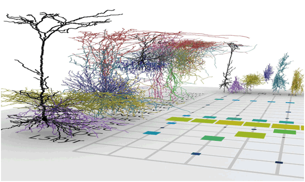 Figure 22 Adult Mice brain Cells: Xiaolong Jiang and Andreas Tolias at Baylor College of Medicine in Houston announced six new types of 15 adult mice brain cells by the method of slicing razor-thin slices (rts) of mature brain. That rts methodology has established a complete census of all neuron cell types is of great importance in moving the field of neuroscience forward," says Tolias, at Baylor College of Medicine Gray Matter Neurons (William Herkewitz, Science Nov 26, 2015)