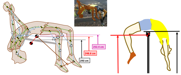 In 2019 an article was prepared for Journal of Biomechanics on inertial quantities – mass, location of centers of mass, especially five parts of the trunk, obtained based on individual anthropological–biomechanical measurements of fit, young subjects. They were control group to high jumpers.31 Beyond this Erdmann prepared Report on high jumping in which he included several research activities of this athletics discipline, and also analyses of jumps of the competitors: a) Richard D. Fosbury from USA (innovator of flop technique), b) Javier Sotomayor from Cuba (world record holder, 245 cm), c) Stefan Holm from Sweden (being 180 cm tall he cleared the bar at the height of 240 cm), d) Mutaz E. Barshim from Qatar (actually the best world high jumper, his personal best is 243 cm). Barshim has a Polish coach, namely Stanisław (Stanley) Szczyrba. Erdmann met him at the IAAF World Championships in October 2019 in Doha (Qatar). After returning home Erdmann has sent to him and to Qatar Athletics Federation a Report on high jumping. The Report has been also sent to the Polish Athletics Union (Figure 7).32 Within some world elaborations location of center of mass when an athlete is over the bar, is presented substantially (up to about 25 cm) below the bar, which is wrong.