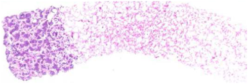 After the needle aspiration, FOAM is extracted from the needle and its formal in fixed and paraffin embedded as a tissue sample (Figure 2). On the other hand, the needle content is placed on a slide and colored on site for the estimate of adequacy.