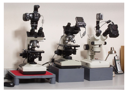 Figure 5 A photograph of a microscopes and cameras demonstrating how photomicrographs are captured.12