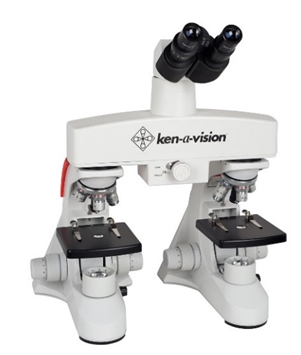 Comparison microscope: It is a device used to analyze side-by-side specimens. It consists of two microscopes connected by an optical bridge, which results in a split view window enabling two separate objects to be viewed simultaneously. It has two separate light paths allowing direct comparison of two samples via one image in each eye (Figure 10). This avoids the observer having to rely on memory when comparing two objects under a conventional microscope.27