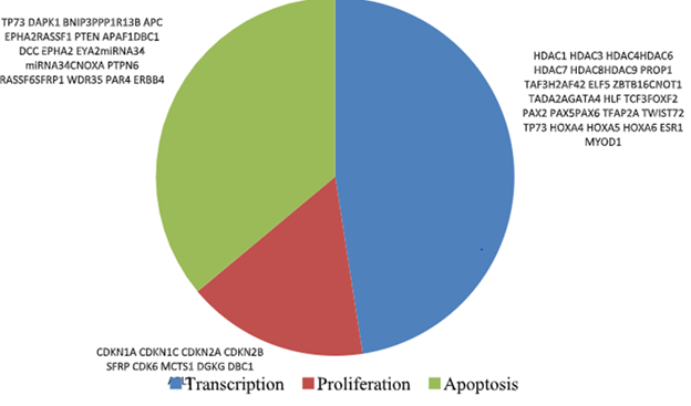 DNA methylation. Approximately 70% of the promoter regions have CpG islands. The hypermethylation of DNA in promoter regions is generally related to the silencing in gene expression of tumor suppressor genes, while in other genes hypomethylation also causes alterations in their function. The enzymes responsible for adding methyl groups to DNA are known as DNA methyltransferases (DNMTs), and at least three have been discovered. DNMT1 is responsible for maintaining DNA methylation during replication, through methylation of the newly synthesized CpGdinucleotides. DNMT3a and DNMT3b establish de novo methylation during embryogenesis and repair errors made by DNMT1 during DNA synthesis.3,4 Abnormal hypermethylation in promoter regions affects not only the expression of coding genes but also the expression of non-coding RNAs, which can contribute to malignant transformation of cells (Figure 1).