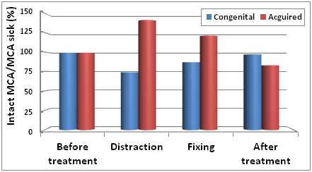 Figure 7 The dynamics of the magnitude of the changes on FV to MCA in the process of surgical treatment of patients with congenital shortening of the limb.