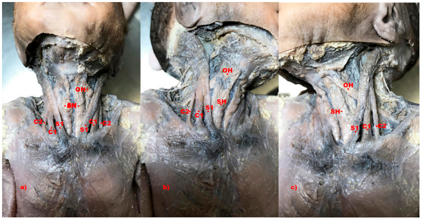 Abbreviations: S, sternal head; C, clavicular head; SH, sternohyoid muscle; OH, omohyoid muscle; Numbers 1-2 indicate the heads