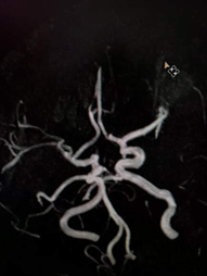 When studying 120 MR-angiograms of individuals without disorders of cerebral circulation we have found the typical anatomy of Willis circle in 32% of cases only (Figure 1). In other 68% of patients from this group, the different variations were found, namely: hypoplasia/aplasia of the anterior communicating artery was noted in 23% (Figure 2), aplasia or hypoplasia of one of the posterior communicating artery in 21% of cases, 17% of patients showed the combination of both anterior and one of the posterior communicating arteries, aplasia of the anterior and both posterior communicating arteries were noted in 4% of cases, the parietal contact of both anterior cerebral arteries were found in 3%.