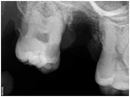 A 35-year-old Indian male patient had came to the Conservative Dentistry and Endodontics Department complaining of spontaneous pain on the right side of the face from past one week with no significant medical history. On observation clinically, the upper right third molar had a deep carious lesion which was tender on percussion. Electric pulp testing (Analytic Technology, CA) was done and was clinically confirmed as irreversible pulpitis. Patient had missing right maxillary second molar which was extracted few years back and was willing to replace it. Hence, a crown and bridge were planned after the root canal treatment of upper third molar. A pre-treatment radiograph was taken (Figure 1).