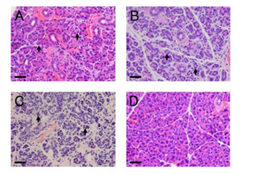 Figure 1 Morphological changes after ligation of the main excretory duct (hematoxylin and eosin staining).