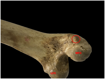 Materials and methods: We evaluated 110 intact medial femoral condyles of human adults, found at the Human Anatomy Laboratories of the Federal University of Sergipe and the Tiradentes University, and 54 were right and 56 left, of unknown gender and age.