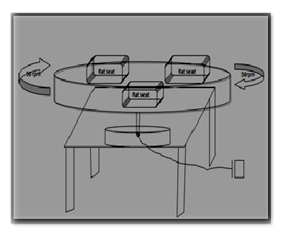 A new instrument has been designed in our laboratory for providing vestibular stimulation by rotations to find out whether learning and memory can be enhanced in rats through rotatory vestibular stimulation. This instrument was designed out of fiber frame as the basement with three plastic cages attached on it to place rats. The cages were of about 15cm length and 10cm width. Only one animal can occupy comfortably in one cage without any entrapment stress. The device works on electricity and the movement provided by this device gives vestibular stimulation in rotation mode. The speed of rotation was 50 revolutions per minute in clock wise direction were fixed by trial and error method with 25rpm and 75rpm.2 Schematic Representation of Rotatory Vestibular Stimulating Apparatus is given in Figure 3.