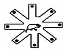 Experimental design for behavioral analysis and administration of rotatory vestibular stimulation and physostigmine: After 30days of vestibular stimulation, the rats were subjected for Behavioral studies in Radial arm Maze. The behavioral experiments were carried out in three phases, viz; Orientation and Training Session, Learning Performance Test (Acquisition Test), and Memory Performance Test (Retention test). The rats were semi starved for 48hrs. Before the start of behavioral experiments. During the threedays of orientation the semi starved rats were allowed to familiarize themselves with the radial maze. After the orientation phase, the behavioral task was performed, where all the eight arms of the maze were baited with food pellets (Kellogg’s chocolate wheat scoops) and then the rat was placed in the center of the maze and allowed to freely explore the maze. The rats were required or trained to take the food pellet from each arm without making a reentry in to the already visited arm. The training or trial was terminated when the animal learned to take the food reward from the all eight arms or after 10 minutes if all the eight arms were not visited. Six trials per day was given with an inter trial interval of 1hour. To avoid olfactory cues, the maze was wiped with 70% ethanol prior to each session.3 After acquisition phase all the trained rats were kept for consolidation of the learned task for 10days. After 10days of acquisition, the retention test was carried out until the rats attaining the learning criteria.4,5 For the assessment of learning and memory the no. of trails taken for attaining the task were recorded. For analyzing the Long Term Potentiation (LTP), the retention test was repeated for 7times with 10days of gap in between each test.6 Schematic Representation of Eight Arm Radial Maze is given in Figure 4.