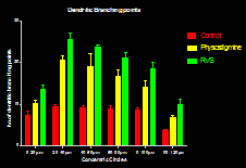 It is clear from the neuromorphological analysis that dendritic arborization is increased in Group B and C when compare with the Control Group, but Group B and C shows a rather similar result in dendritic intersection (Figure 8) .
