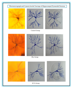 After the behavioral studies Neuromorphological analysis were carried out. The brain was shelled out and the hippocampus dissected out for processing with Rapid Golgi staining method.9,10 After staining, the hippocampal sections were taken at 120µm thickness using rotary microtome and Camera lucida tracings of Hippocampal pyramidal neurons were done. Dendritic branching points and intersections were counted by Sholl Analysis Method.