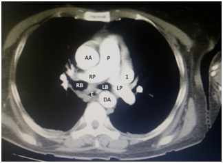 AA: Ascending Aorta; DA: Descending Aorta; P: Pulmonary Trunk; RP: Right Pulmonary Artery; LP: Left Pulmonary Artery; RB: Right Principal Bronchus; LB: Left Principal Bronchus; E: Esophagus