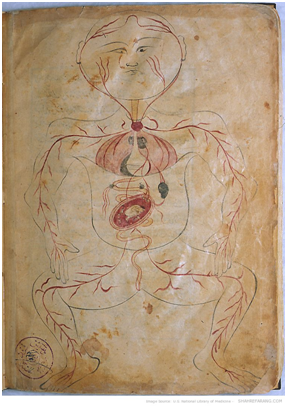 Keywords: mansur ibn elyas shirazi, women's anatomy, anatomical illustration, tashrihi mansuri, persian medicin