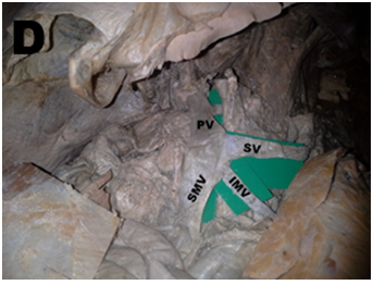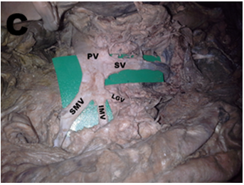 The present study was carried out during routine dissection in the Department of Human Anatomy, University of Nairobi. A total of 42 adult cadavers (27 male and 15 female) were included in this study. Cadavers that had features of previous abdominal surgeries or trauma were excluded from the study. After a midline abdominal incision to open the abdomen was made, the SMV, IMV and SV were identified and followed up to the point of PV was formation. Photographs of the variations noted were taken.