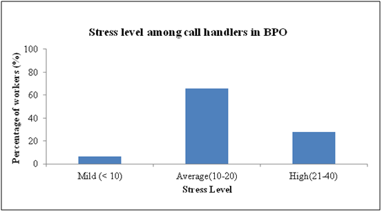 Similar to other studies21 stress due to higher workload and work-related dissatisfaction was reported in this study by the respondents as having higher work volume, many a times unclear/uncertain about their role in resolving the clients’ demands and conflicts with the client and/or the supervisors/managers due to the demands placed upon them. Importantly respondents in this, about 40% of the respondents were stressed by the fact that they could not use their skills and abilities to the full extent in their job. Also, the new finding that emerged from this study is that in spite of training and language orientation to handle English speaking clients from North America and Europe, there is an element of stress that is faced by almost all non-English speaking call handlers due to perceived insufficiency in language, which was not reported in other studies21 including the studies from non-English speaking countries.
