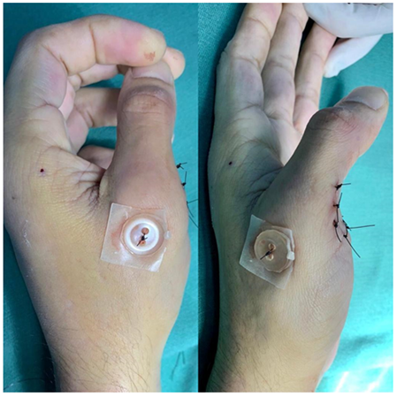 At 2-month follow-up, full range of motion was restored and pinch force was comparable to t uninjured hand. |