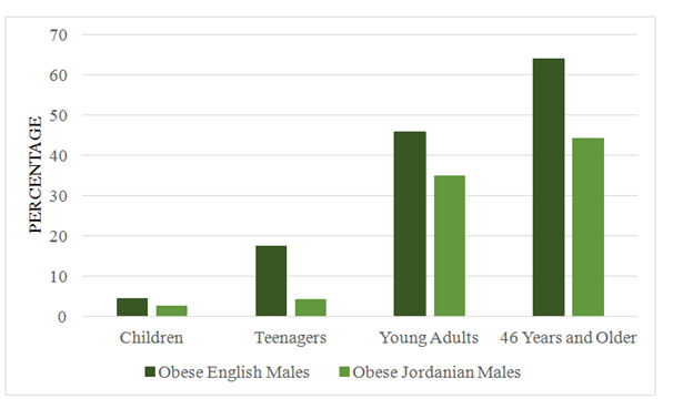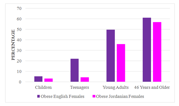 Variation in obesity prevalence can be attributed for many factors. Race/ethnicity is a crucial reason in obesity; in fact, fatness is a disease driven by genetics.5 The differences in obesity prevalence between the white English and the Jordanians can be explained on that fact.