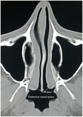 Patients who had pathology of para nasal air sinuses; nose and nasopharynx were excluded from the study in order to negate possible distorted anatomy of GPF.