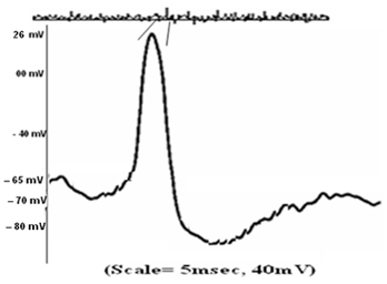 Methods: Freshly captured adult animals of both the sexes were used in all the experiments, and the gastrocnemius (skeletal) muscles were dissected out. The muscle samples were digested with digestive fluid (pepsin & HCl), stirred, settled and supernatant was removed, till whitish fluid having clear cells obtained for patch clamp recording of ionic currents and potentials (active and passive electrical potentials). Resting membrane potentials and action potentials of reptilian skeletal muscle cell membranes were measured in whole cell current mode. The glass microelectrodes, with a tip diameter 2-3μm and tip resistance 5-6 MΩ (when filled with intracellular solution) were used in these experiments.