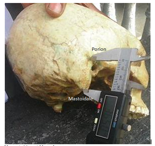 Mastoid length: The distance between Porion-Mastoidale was measured as skull was kept with Norma lateralis position facing the observer.
